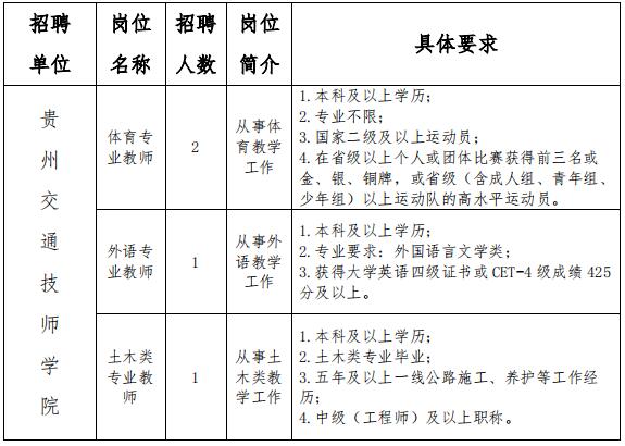 考试采取岗位适应性测试和现场评审方式进行,由学院组织实施。考试时间另行通知,请应聘人员务必保持通讯畅通,考试地点为贵州交通技师学院(贵阳市云岩区白云大道224号)。