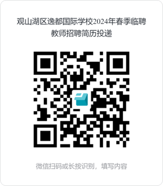 2024-03-06 14:54|来源:金粉笔教育|热度:手机上打开 贵阳市观山湖区逸都国际学校(北京市润丰学校贵阳分校)是一所现代化、国际化的新型公办九年一贯制学校,占地面积29164平方米。环境幽雅、大气,教学设施设备先进齐全,是学生读书、强身、修身养性的学园、乐园和家园。 学校秉承“一切为了孩子,一切为了明天”办学思想,以“三全、三爱、三服务”为办学宗旨、以“和谐教育”为办学特色,以和合文化为核心文化,以“和谐共进,互竞芳菲”为核心理念,以勤勉、文雅、活泼、奋进为校训,追求教育理念现代化和教育教学现代化。 学校积极建设创意新型校园文化,凸显和谐办学特色;构建七彩阳光德育体系,把学生培养成为“讲文明、爱学习、勤锻炼、善文艺、会劳动、懂科学、乐助人”的“七星好少年”;构建七彩阳光课程体系和“和逸心”课堂,深化课堂教学改革,使学校成为推行素质教育的园圃,学生成长为全面发展的人才。 学校现有58个教学班,在校学生2656人,教职工120人。学校重视名师和优秀青年教师培养,拥有一支德才双馨的教师队伍。教师队伍中有省级骨干教师3人,市级名师2人,市级骨干教师3人,区级名师1人,区级骨干教师3人,市级教坛新秀3人;有研究生学历13人,高级职称10人。 建校10年来,学校先后获得全国青少年校园足球和校园篮球特色学校、贵州省“中国好老师行动计划”基地校、贵州省语言文字示范校、贵阳市中小学德育学科研究基地等多项荣誉称号。 1.相应专业本科及以上学历(参照教师公招专业要求) 1.热爱教育事业、责任心强、能吃苦耐劳、有奉献精神。 2.无违法乱纪记录,无不良嗜好,品行端正,为人师表。 1.如果您接受招聘邀请,请扫描下方二维码填写表单信息并上传简历及相关证书扫描件(身份证、毕业证、教师资格证、普通话证) 观山湖区逸都国际学校贵州省贵阳市观山湖区云潭南路中铁逸都国际小区内 【本文来源于网络,如有不当之处,请联系金粉笔教育反馈修改,或者进入贵州人事考试信息网进行查看】