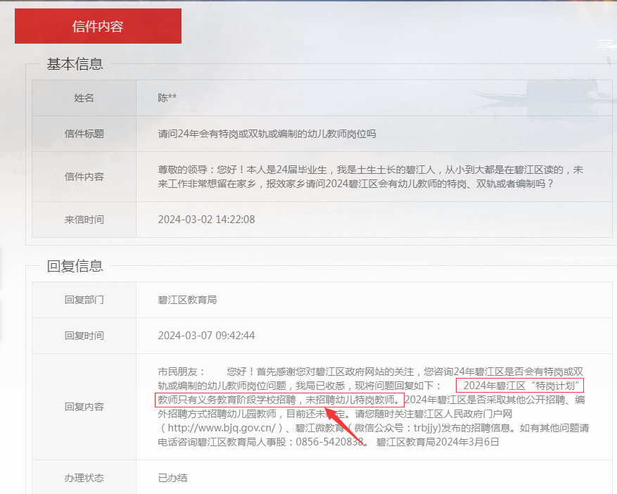 铜仁市碧江区:2024年碧江区“特岗计划”教师只有义务教育阶段学校招聘,未招聘幼儿特岗教师。2024年碧江区是否采取其他公开招聘、编外招聘方式招聘幼儿园教师,目前还未确定。