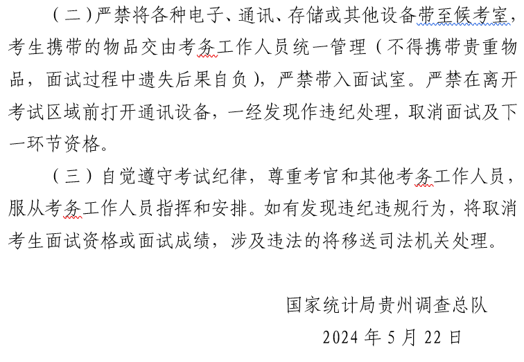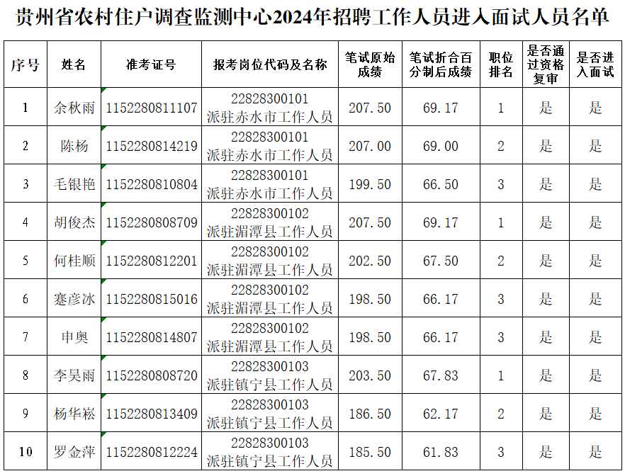 根据《贵州省农村住户调查监测中心2024年公开招聘工作人员方案》有关规定,现场资格复审工作已经结束,现将进入面试人员名单及面试相关事宜公告如下: