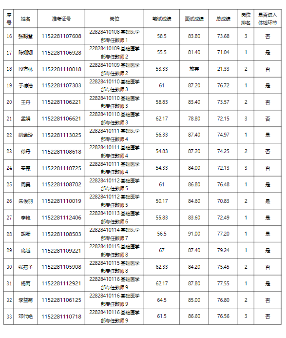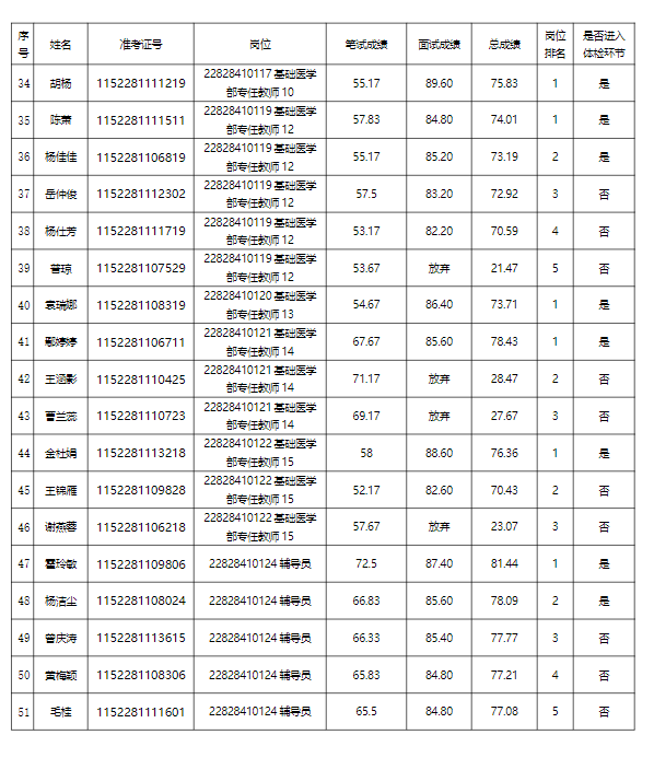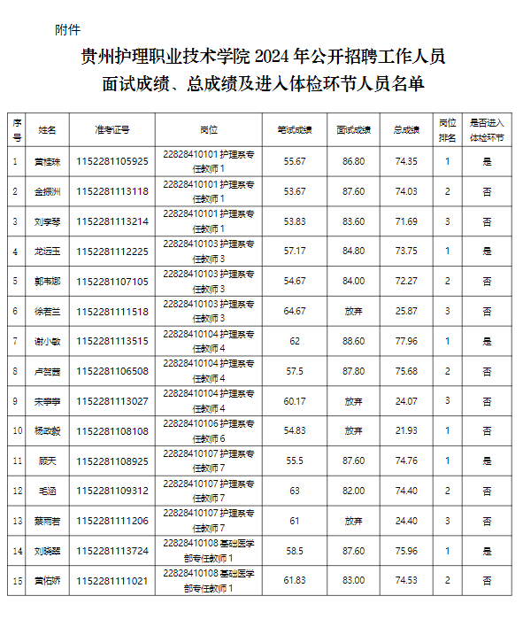 2024年贵州护理职业技术学院招聘面试成绩、总成绩及体检公告(6.7体检)