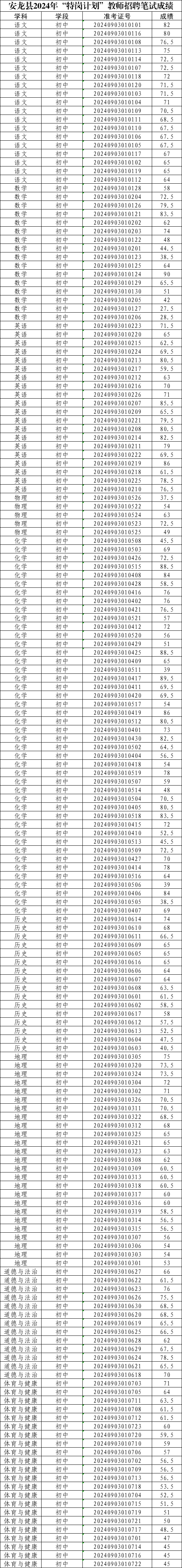 详见《安龙县2024年“特岗计划”教师招聘笔试成绩统计表》(附件1)。
