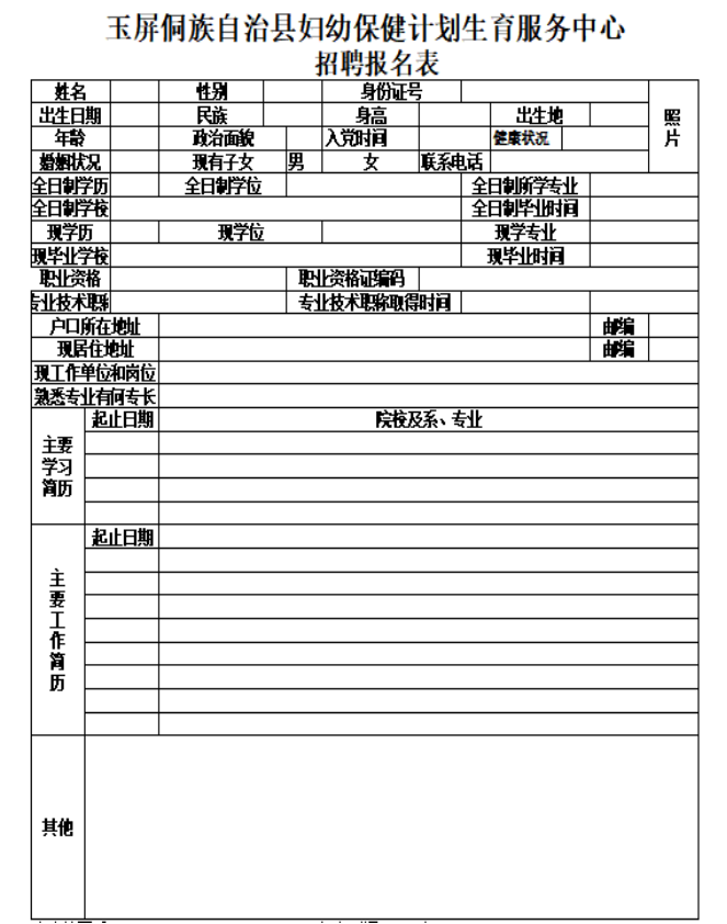 2.玉屏侗族自治县妇幼保健计划生育服务中心招聘报名表