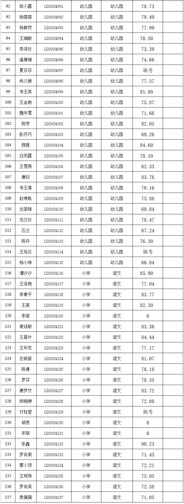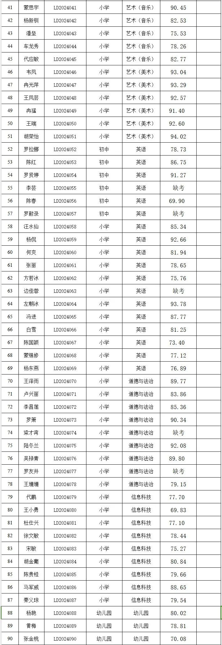 1.罗甸县2024年“特岗计划”教师招聘面试成绩
