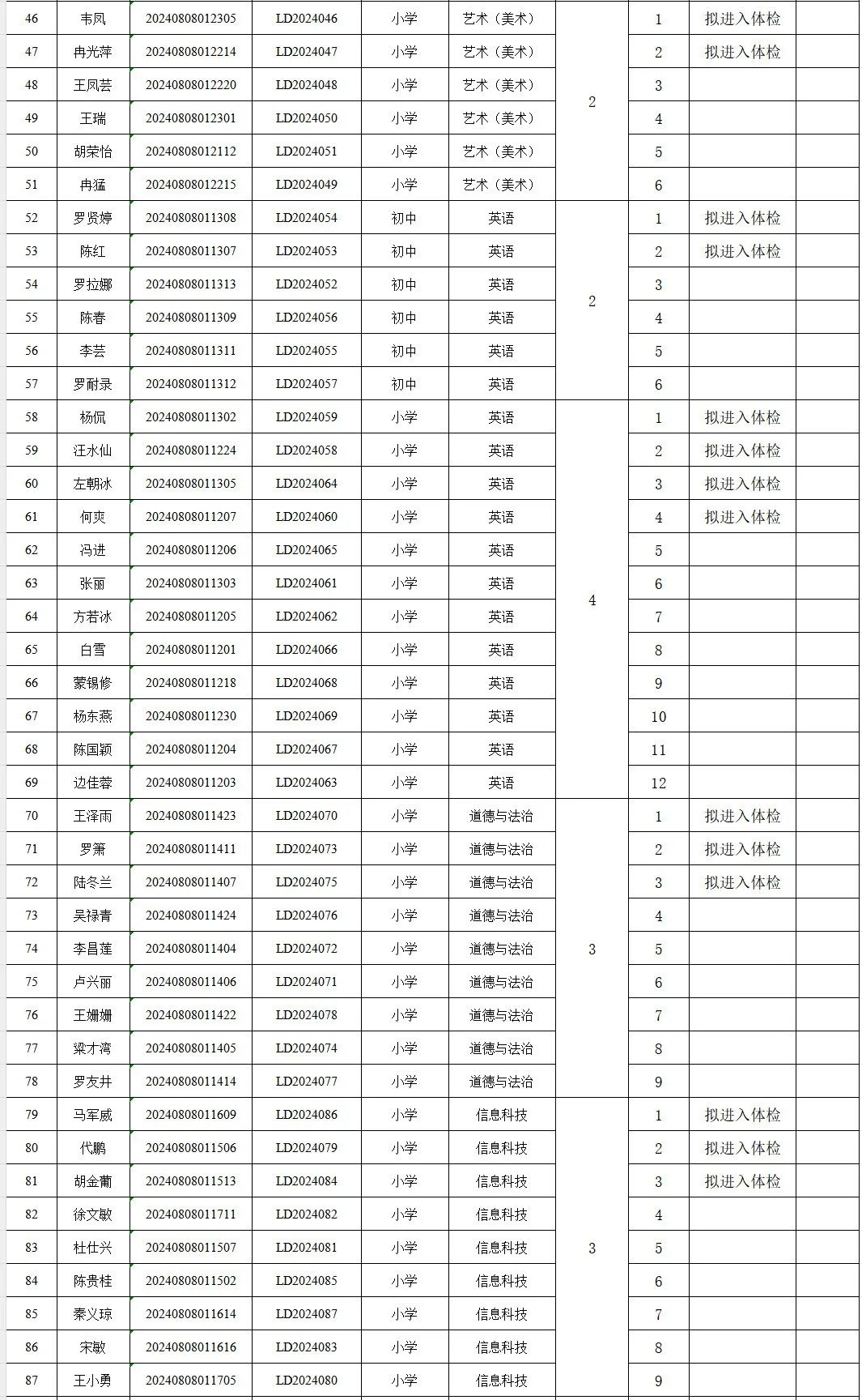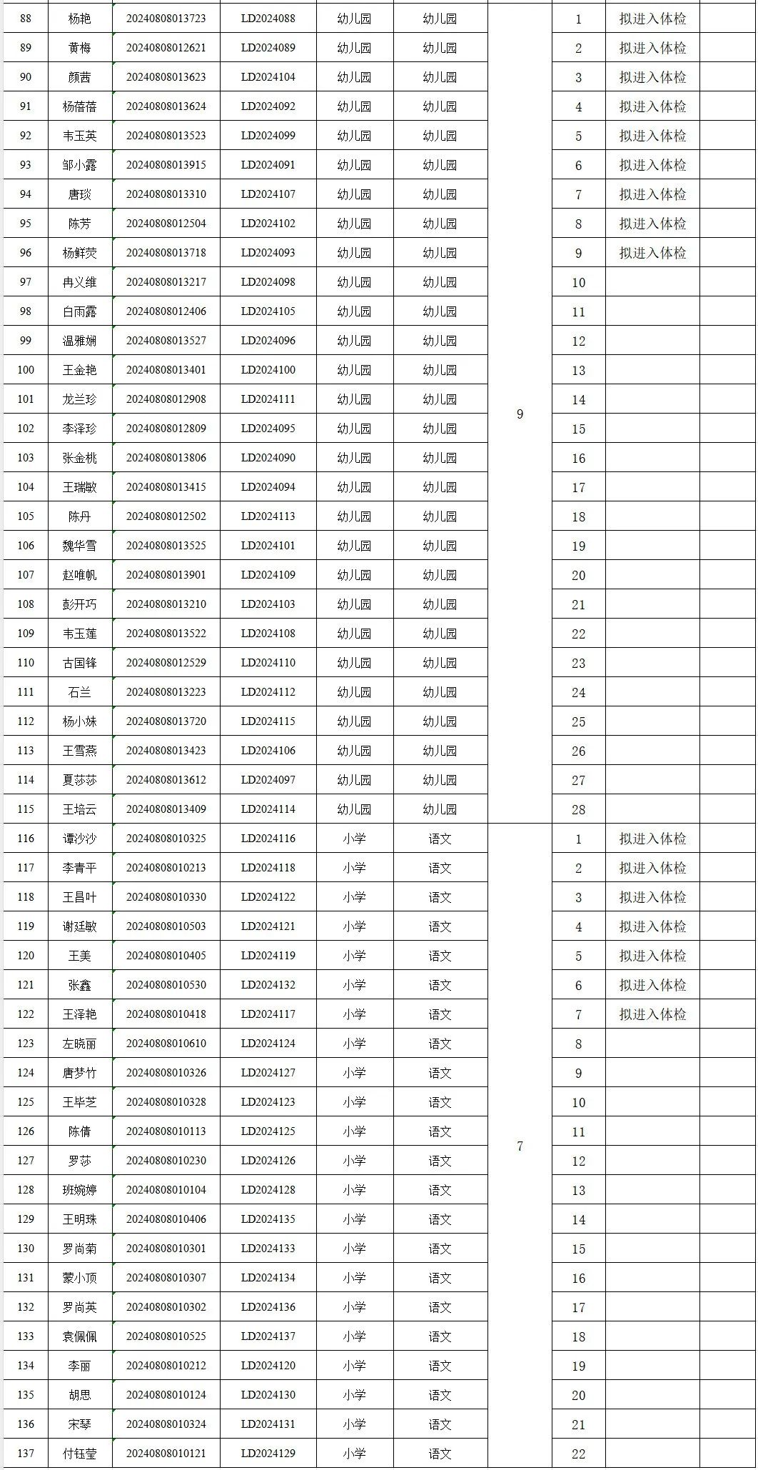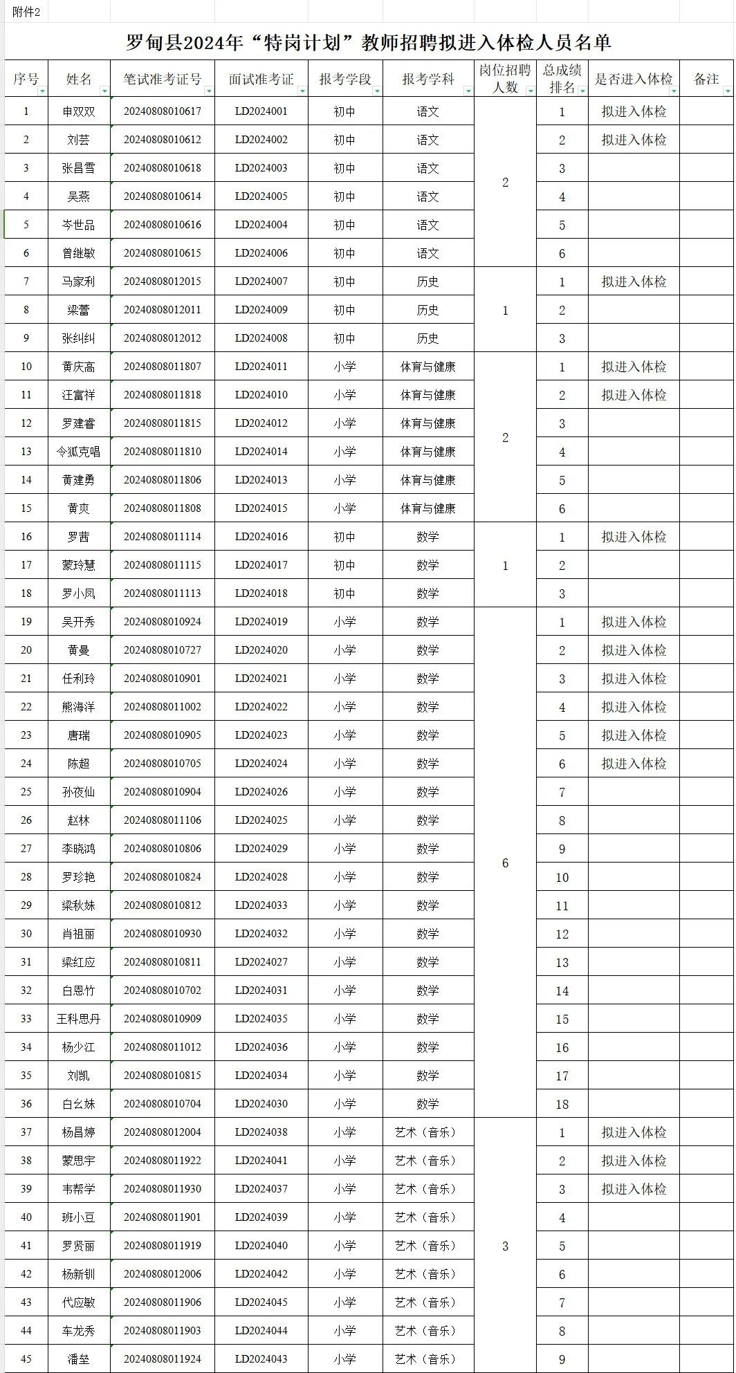 2.罗甸县2024年“特岗计划”教师招聘拟进入体检人员名单