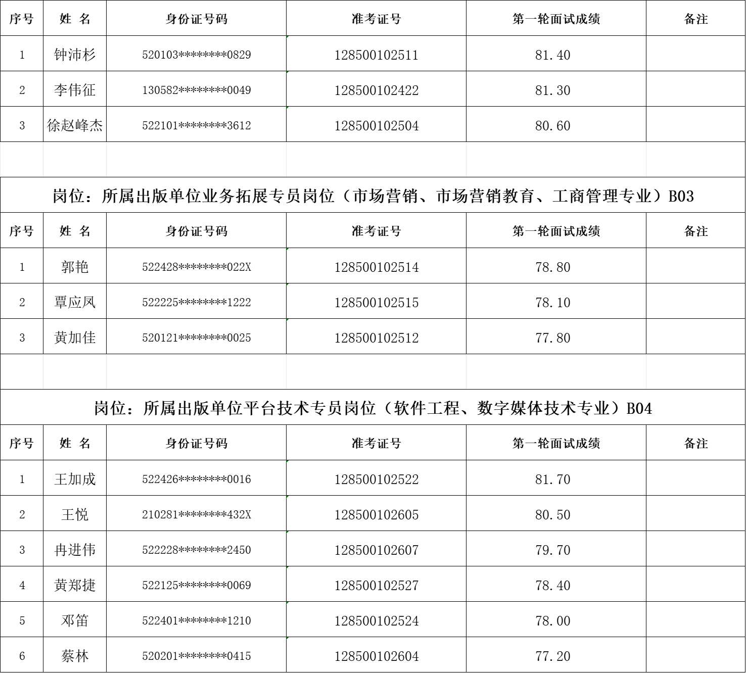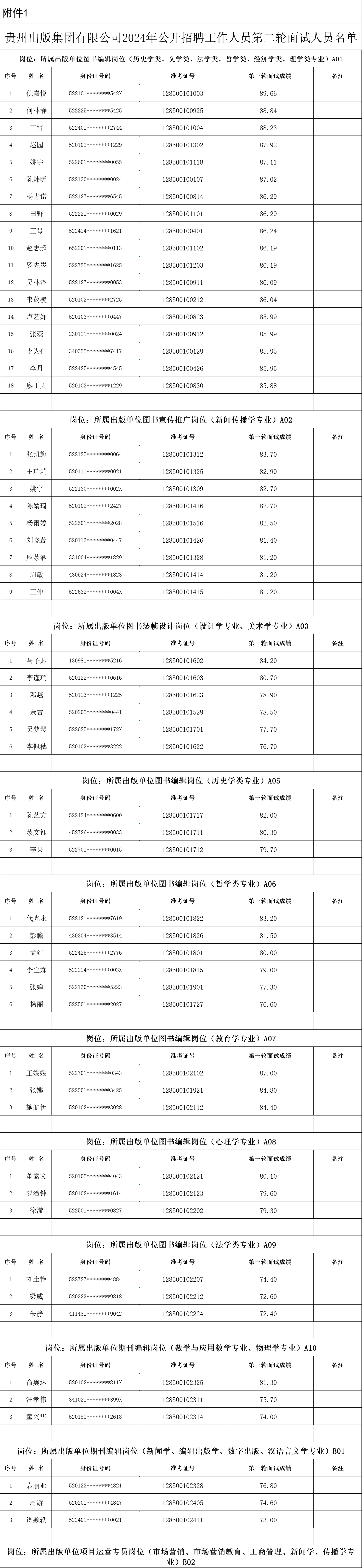 附件:1.贵州出版集团有限公司2024年公开招聘工作人员第二轮面试人员名单