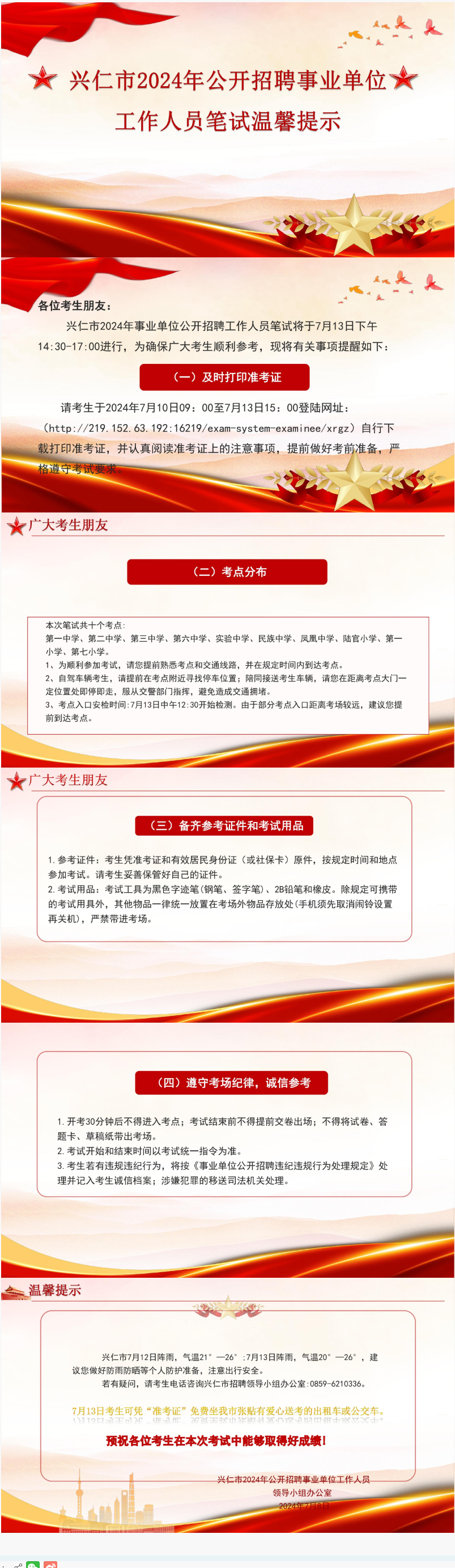 兴仁市2024年事业单位招聘笔试温馨提示