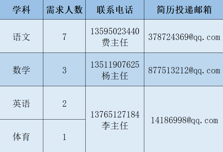 因学校教学及发展需要,面向社会公开招聘临聘教师13名,招聘岗位如下: