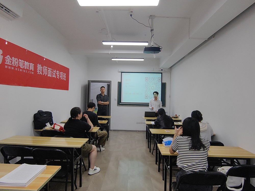 贵州金粉笔教育信息2024年兴义市教师面试培训班9月7日开课了,小班授课,全程主讲老师带领。班主任正在做课前开班导读,欢迎大家来到这里,接下来给学员们讲解课堂纪律、上课时间、主讲老师、课前课后问题等,希望大家努力提升自己,在这些兴义教师面试中,顺利圆了自己的教师梦。
