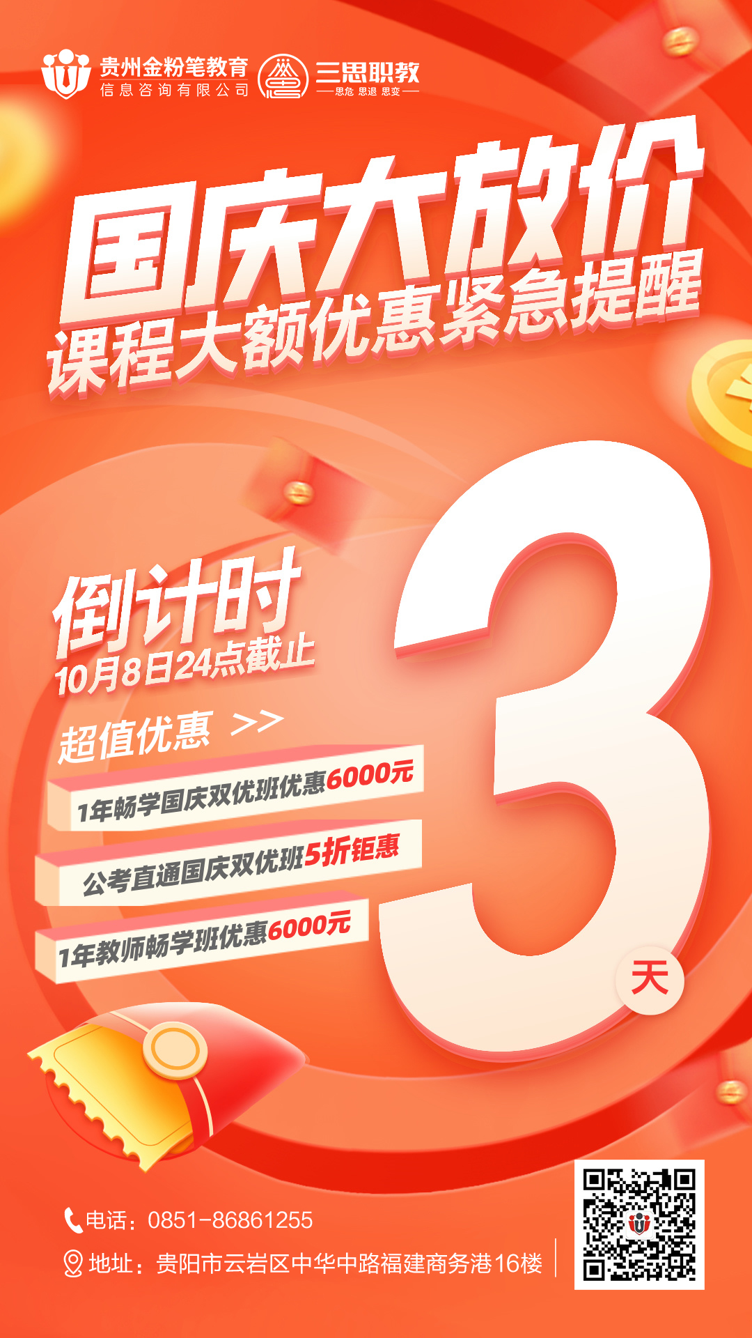 ▫ 公考培训课程国庆特惠活动倒计时1天