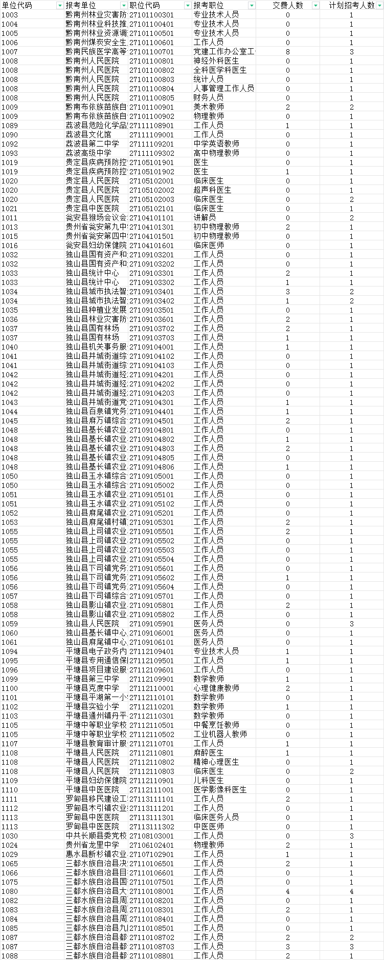 1、黔南州2024年下半年统一面向社会公开招聘事业单位工作人员缴费不足3比1(截止10月8日17时).xlsx