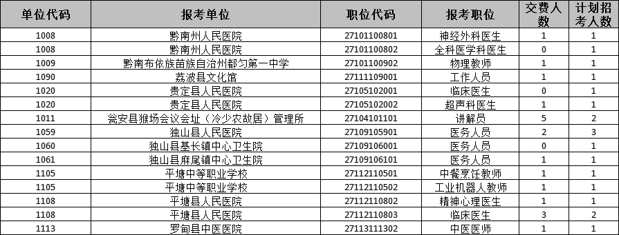 附件1:黔南州2024年下半年统一面向社会公开招聘事业单位工作人员缴费人数不足3比1(截止10月11日17时).xlsx?