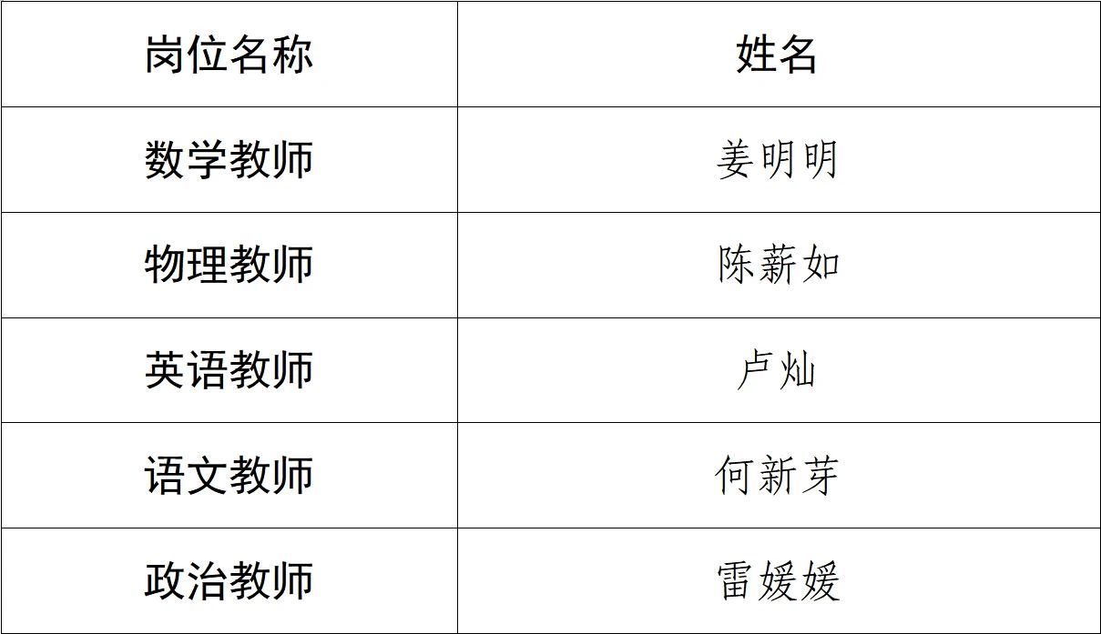 按照《长郡贵阳高级中学(贵阳市民族中学)2024年招聘教育部直属师范院校公费师范生工作方案》,通过现场资格复审、面试、试教(无生)、试教(有生)等环节,按照以德为先、择优录取的原则,并经学校党委会审议,现将通过试教进入下一环节的名单公布如下: