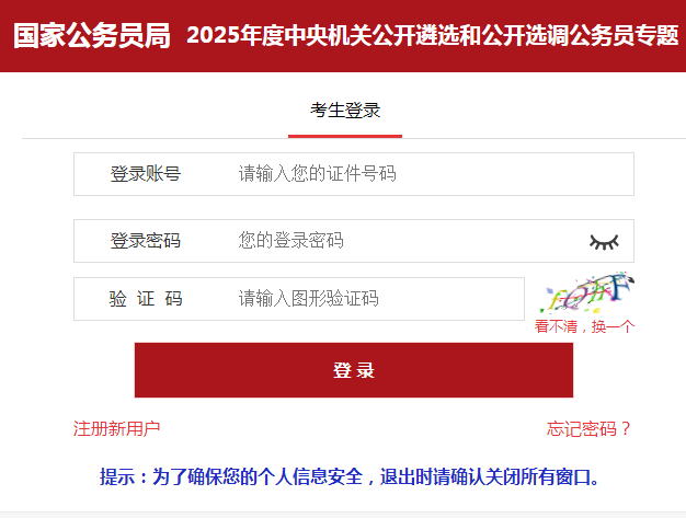 2025年度中央机关公开遴选和公开选调公务员371人报名入口已开通,报名时间为2024年10月28日8:00至11月6日18:00,报名人员登录遴选选调专题网站,进行网上注册,设置个人密码,填写详细信息。用户名和个人密码是查询资格审查结果、下载打印准考证等事项的依据,请报名人员务必牢记。