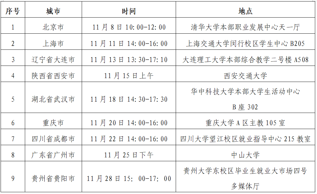应聘者本人携带个人简历前往宣讲会现场报名。校园宣讲会行程如下:
