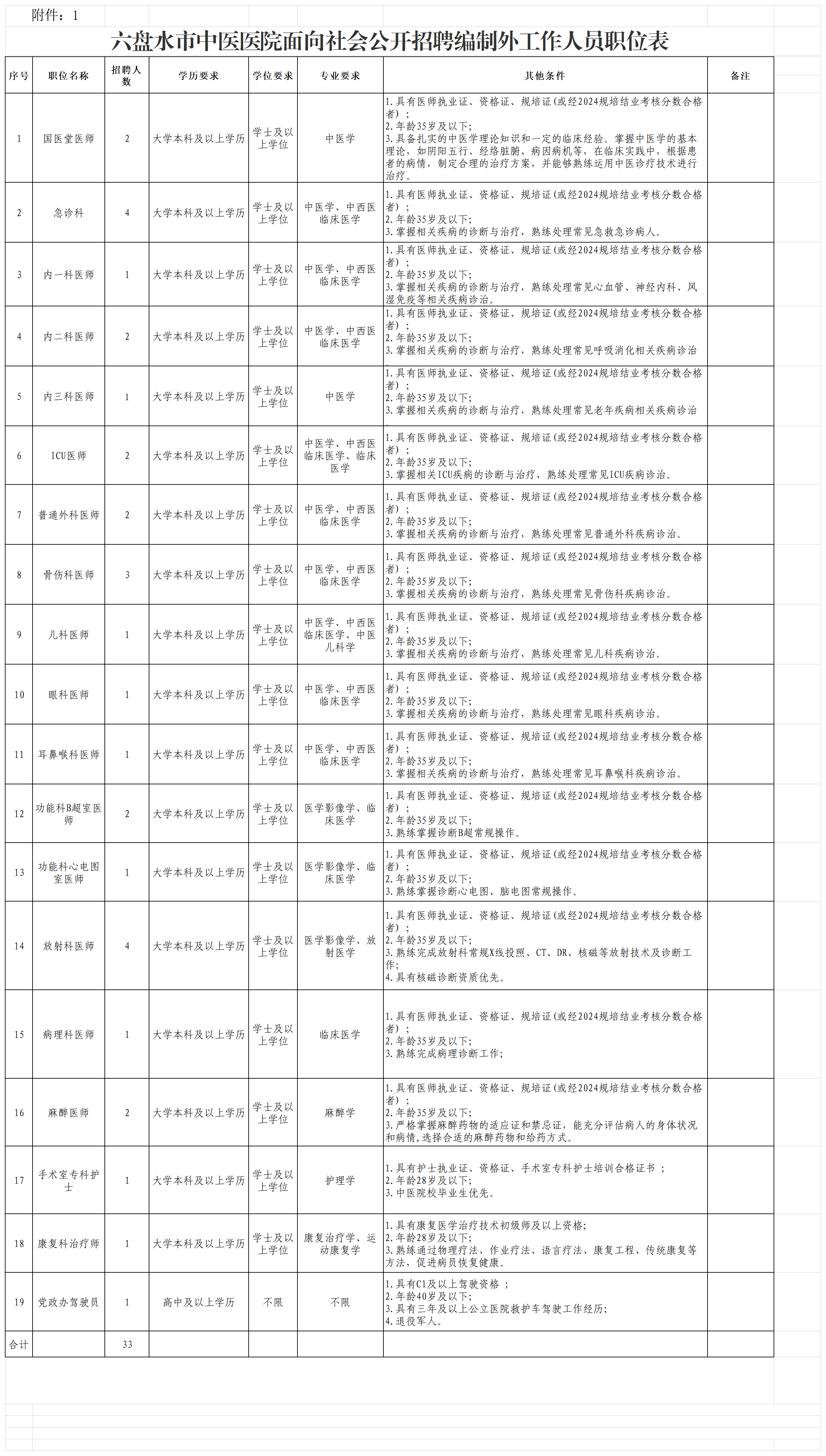 附件1六盘水市中医医院面向社会公开招聘编制外工作人员职位表.xlsx