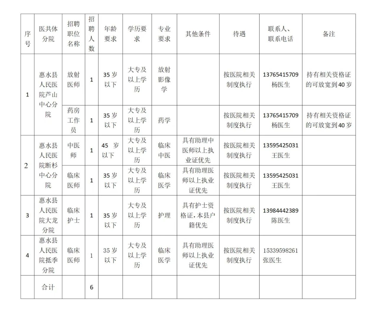 (1)惠水县人民医院医共体芦山中心分院(芦山镇中心卫生院),咨询电话:13765415709;