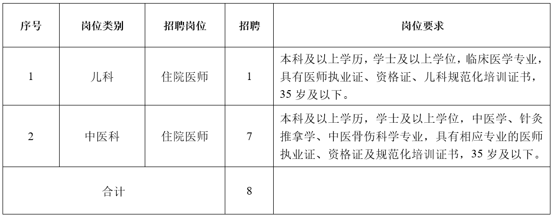 为加强医院人才队伍建设,根据科室业务发展需要,我院面向社会公开自主招聘编制外医务人员8名,现公告如下。