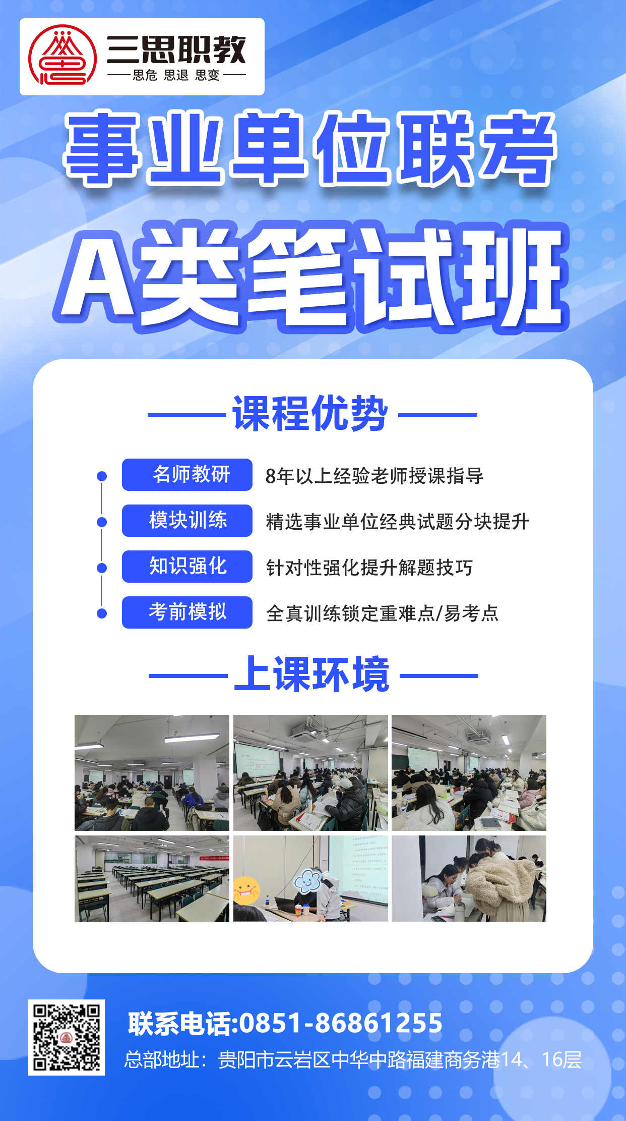六盘水金粉笔.三思职教六盘水事业单位联考A类培训班开课,事业单位联考A类培训班课程预订及详情咨询:13368515037(微同)。