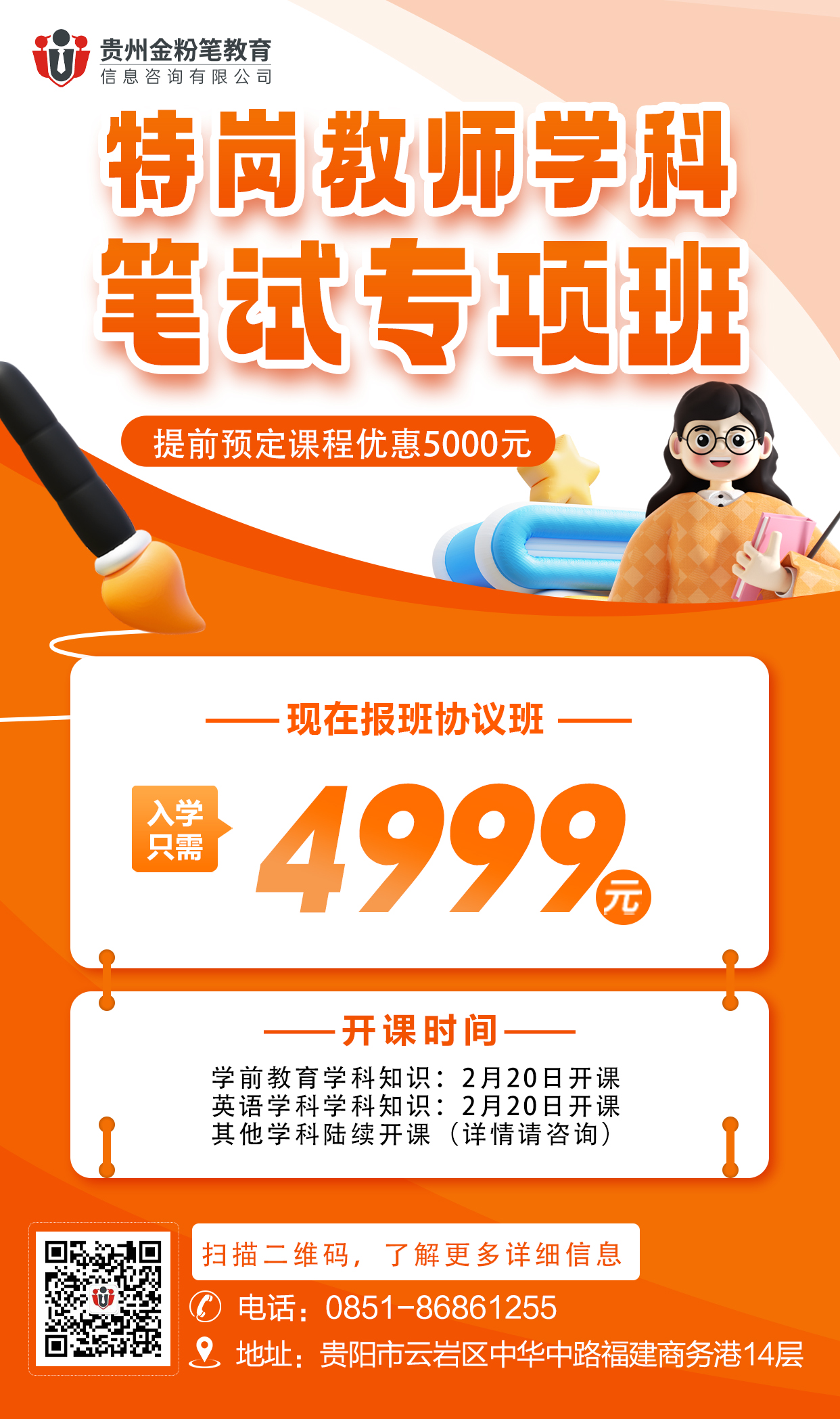贵州金粉笔2025年贵州心理健康特岗教师专项培训班来了,开课时间详情咨询,心理健康特岗培训班次有畅学班、直通班、特训班,在2月28日前预订或报班,可享相关课程优惠,心理健康特岗教师笔试培训内容教育综合知识+学科专业知识,2025年心理健康特岗教师培训班预订及详情咨询:13368515037(微同)。