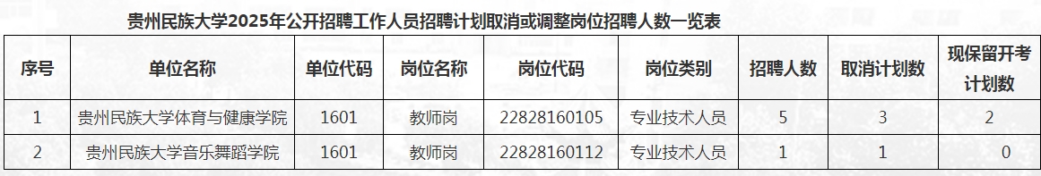 附件:贵州民族大学2025年公开招聘工作人员招聘计划取消或调整情况一览表