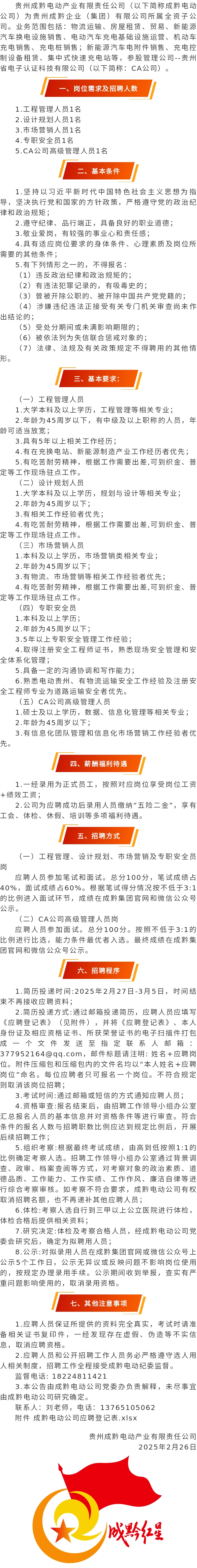贵州成黔电动产业有限责任公司招聘公告(5名|2.27-3.5报名)