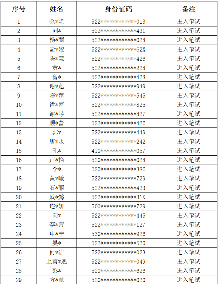 根据《成黔集团2025年高校毕业生招聘公告(一)》,截至报名时间结束,经初步资格审查,以下130人进入笔试。现将有关事宜公告如下:
