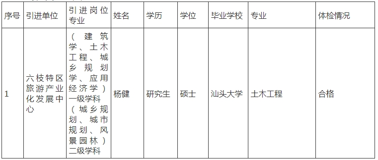 六枝特区旅游产业化发展中心参加2024年省校合作赴省外知名高校引才活动引进高层次和急需紧缺人才体检已经结束,现对体检人员体检结果进行公示(名单附后)。公示期7天(2025年3月27日至2025年4月2日),公示期内,如有异议,请实名举报。