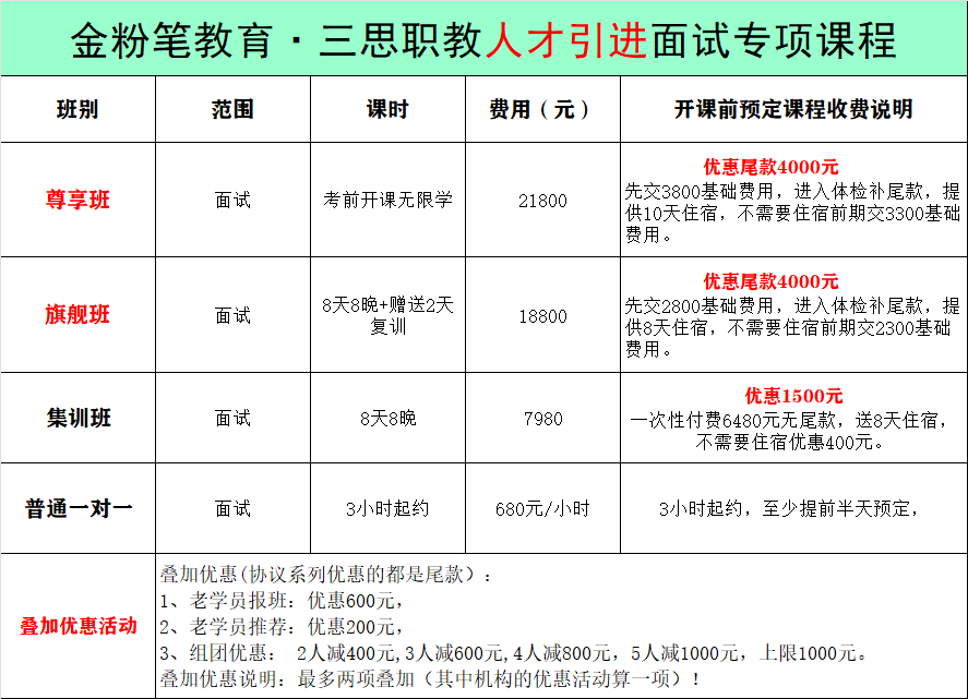 贵州金粉笔.三思职教2025年贵州人才引进面试培训班来了,面试班次有协议班、集训班、一对一班次,班次不同,培训费用不同,满足不同考生群体的需求,有无面试基础均有班次学习。贵州人才引进面试培训班预约及详情咨询:13368515037(微同)。