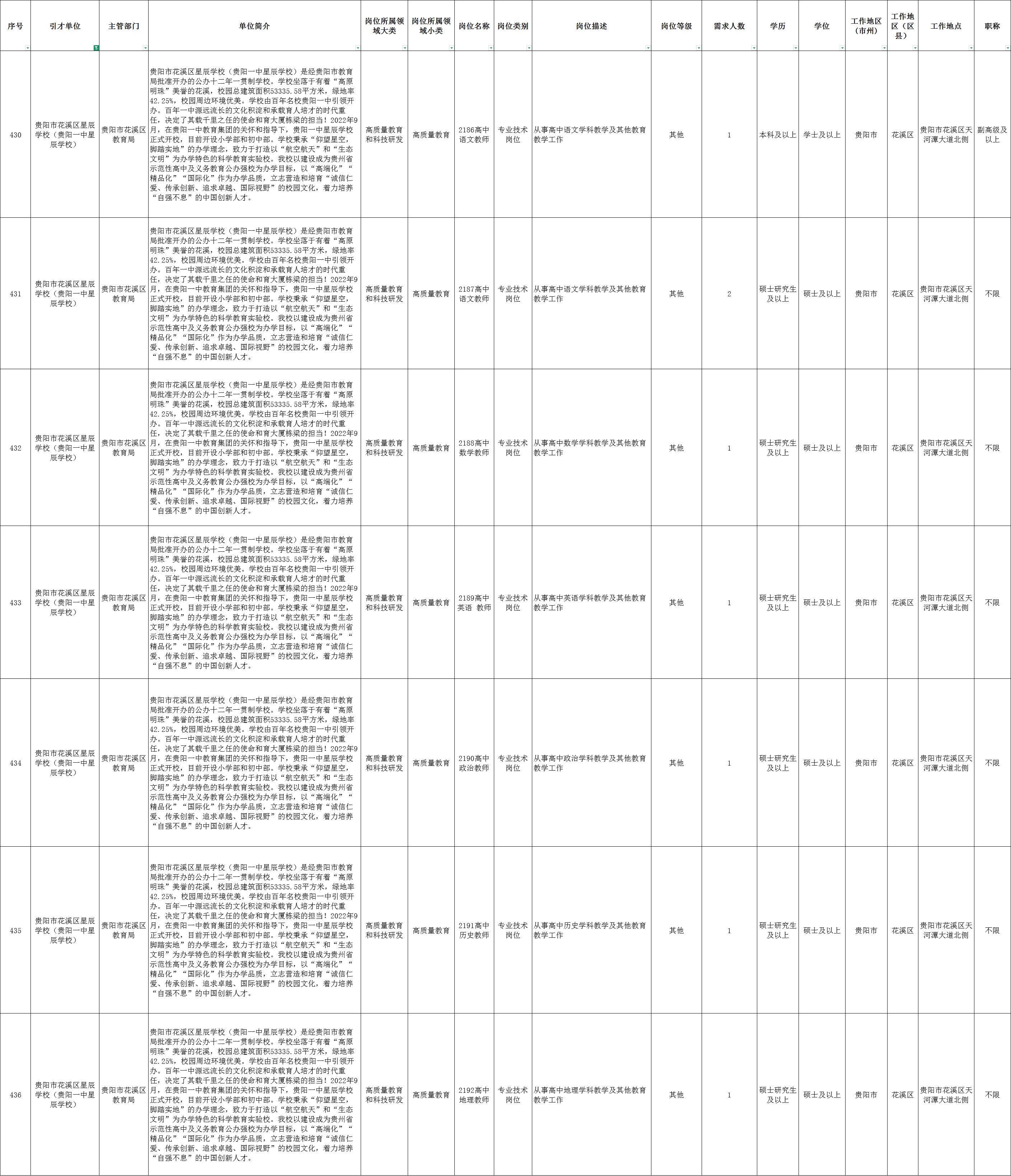 本次人才引进工作将通过网上报名方式开展。应聘人员可访问贵州人才博览会官方网站(网站:https://rc.guizhou.gov.cn),按照网站指引完成个人信息注册与登录,并上传学历学位证书、专业技术职务资格证书等相关材料(文件格式为PDF)。完成材料上传后,应聘人员需在贵州人才博览会官方网站内向贵阳市花溪区星辰学校(贵阳一中星辰学校)投递个人简历,方可视为报名。