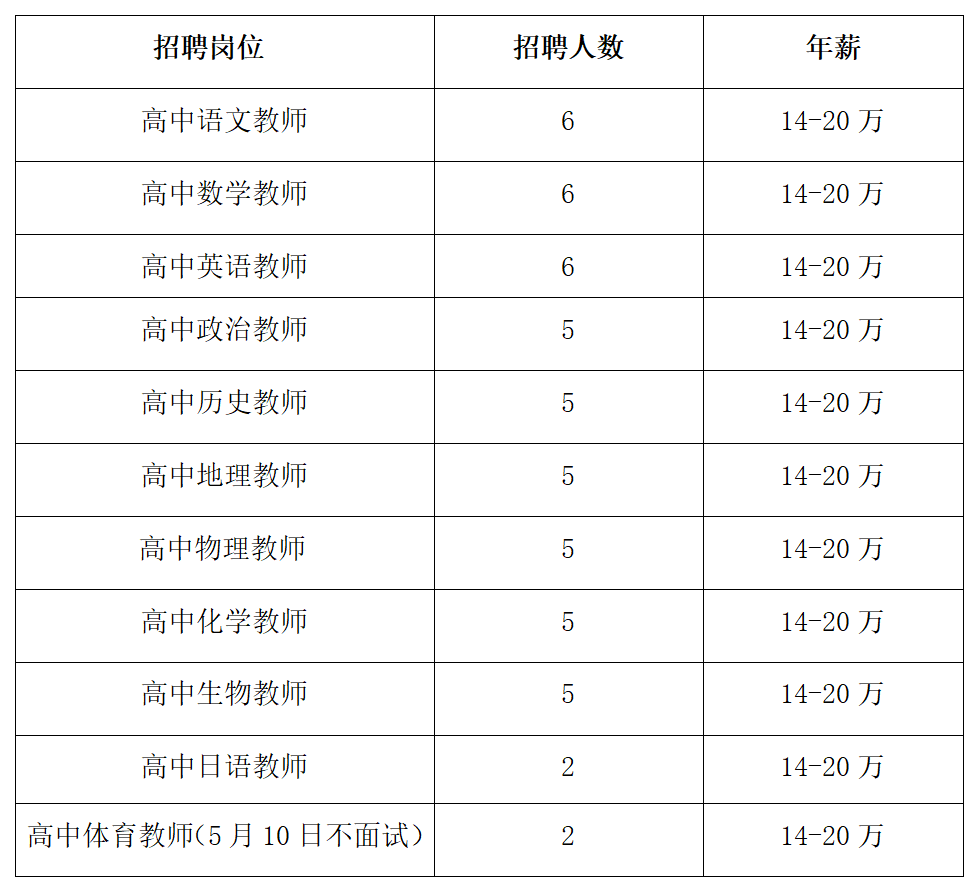 备注:体育教师专场招聘会时间另行通知(体育学科不参与5月10日招聘)