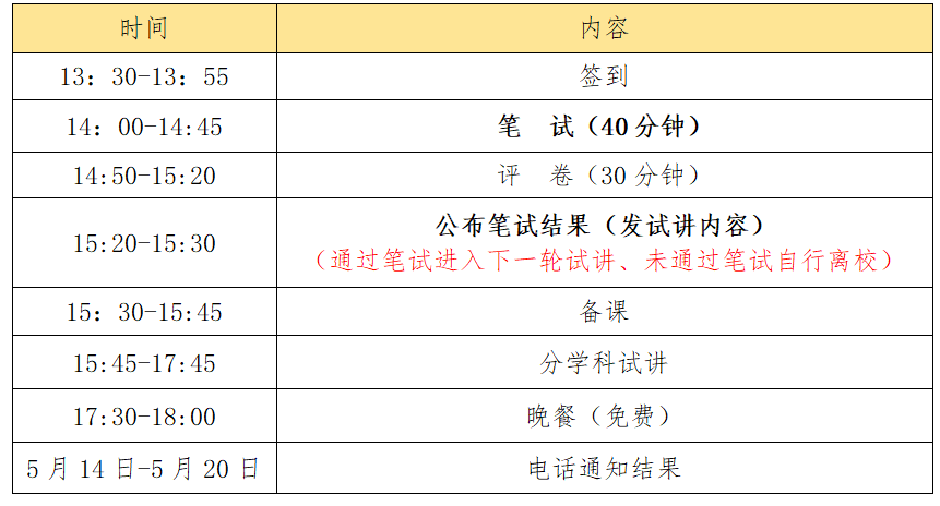 6.分学科试讲时间:5月10日下午15:45—17:45