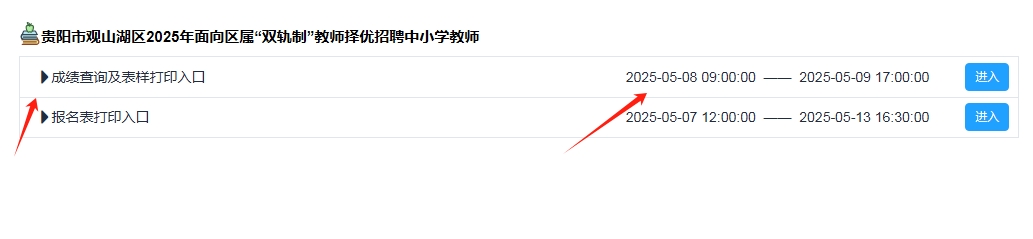 贵阳市观山湖区2025年面向区属“双轨制”教师择优招聘中小学教师72人笔试成绩查询入口(5.8-5.9)