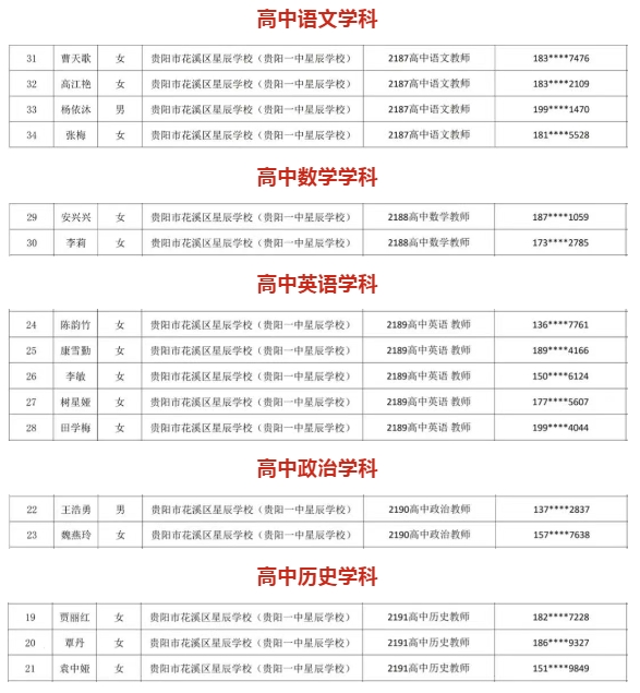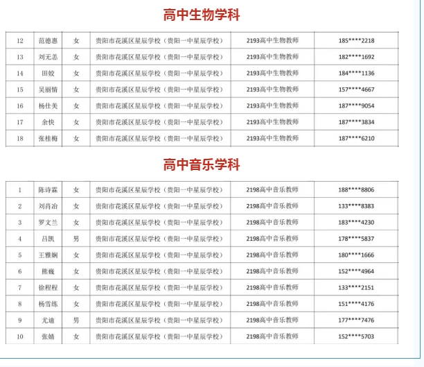 贵阳一中星辰学校2025年人才引进资格初审通过人员名单如下: