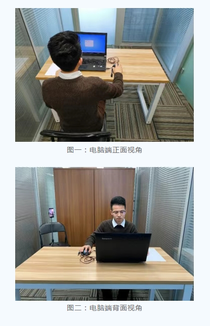 (4)考生应参照说明书中《智考云在线考试规范》的要求,调整好摄像头的拍摄角度和身体坐姿,并确保上半身能够在电脑端的摄像范围中,拍摄角度应避免逆光。