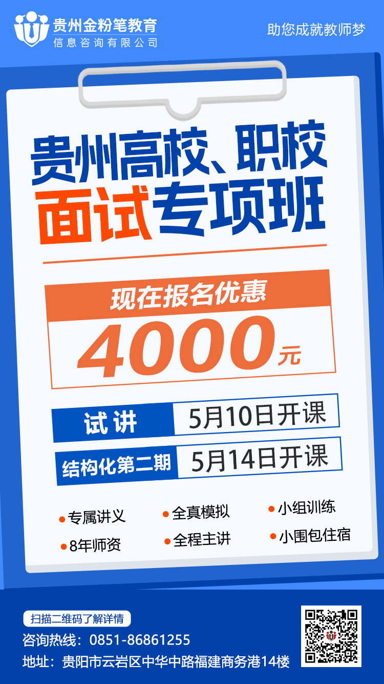 2025年贵州高校职校试讲面试专项班第一期5月10日开课、高校职校结构化面试专项班第二期5月14日开课优惠活动。