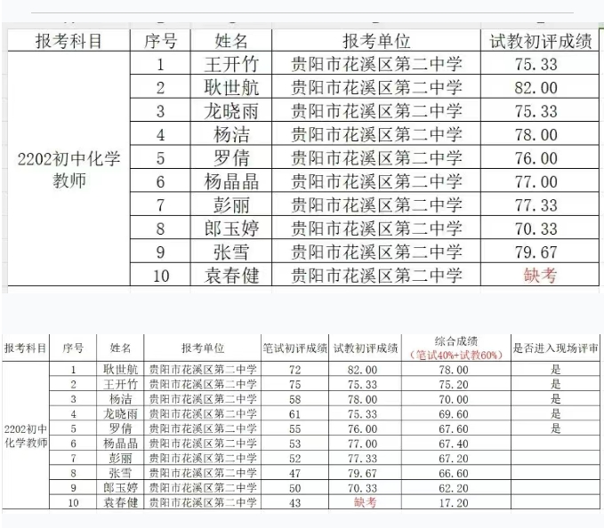 根据《第十三届贵州人才博览会贵阳贵安事业单位引进高层次及急需紧缺人才工作方案》《花溪区事业单位2025年引进高层次人才工作实施方案》要求,贵阳市花溪区第二中学人才引进专业测试初评试教成绩及进入现场评审名单如下: