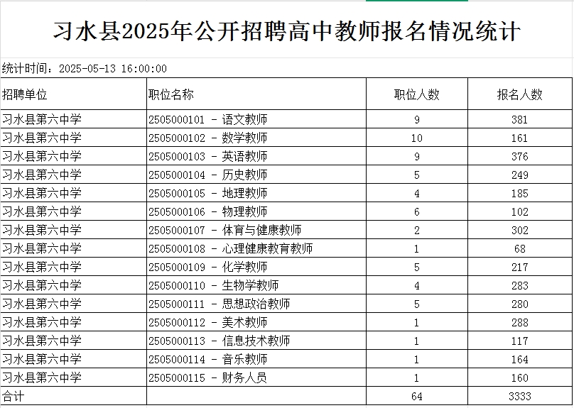 2025年习水县高中教师招聘5月13日报名情况统计(3333人报考)