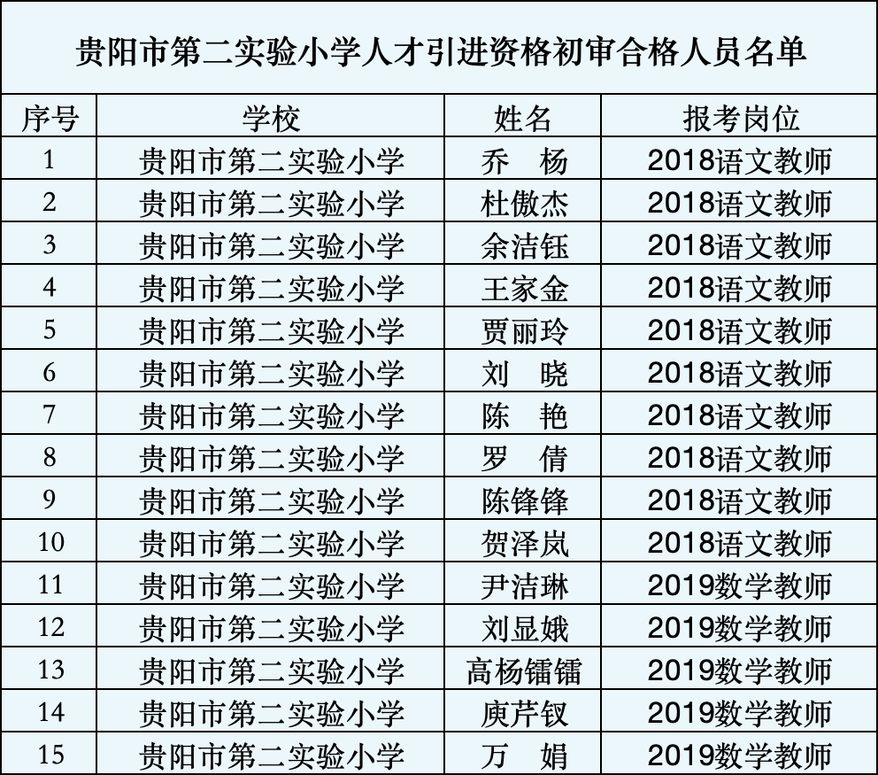 附件:贵阳市第二实验小学人才引进资格初审合格人员名单
