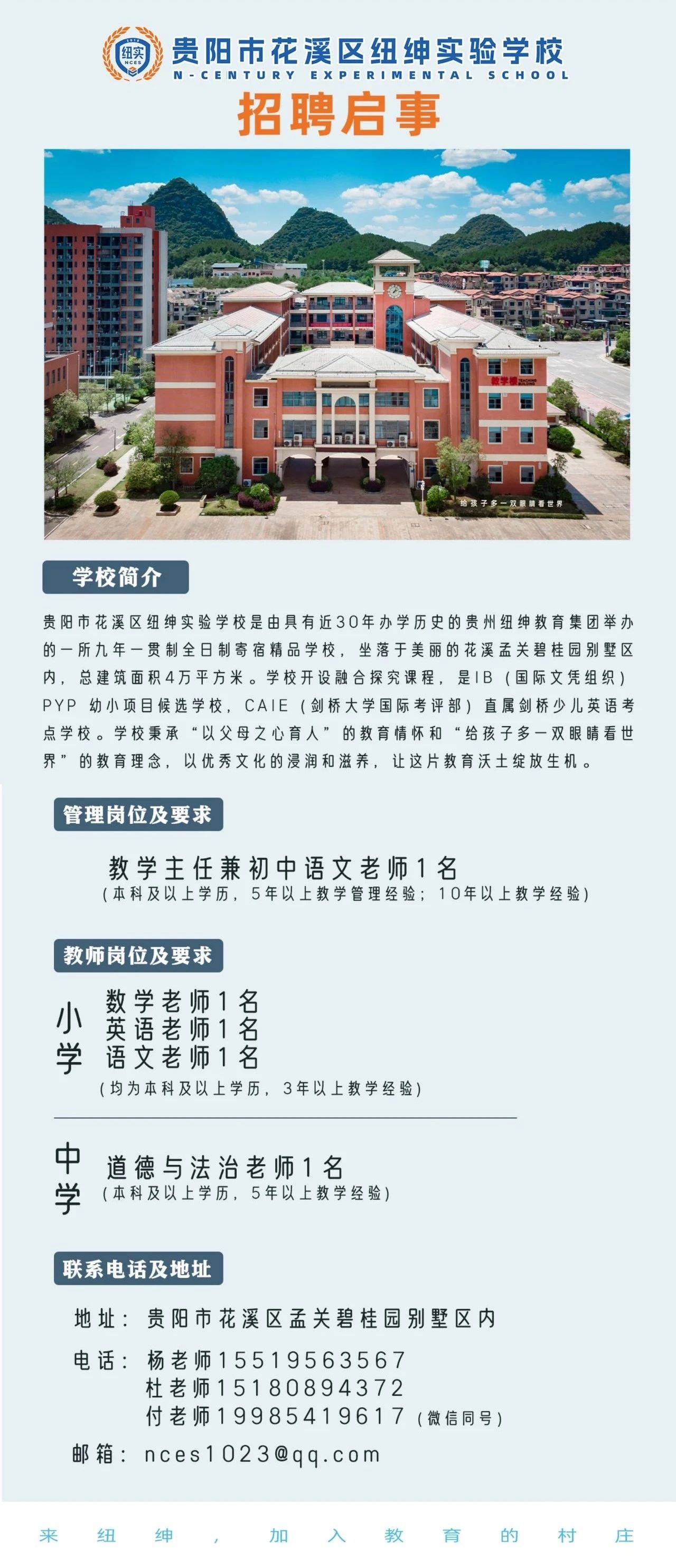 贵阳市花溪区纽绅实验学校招聘启事