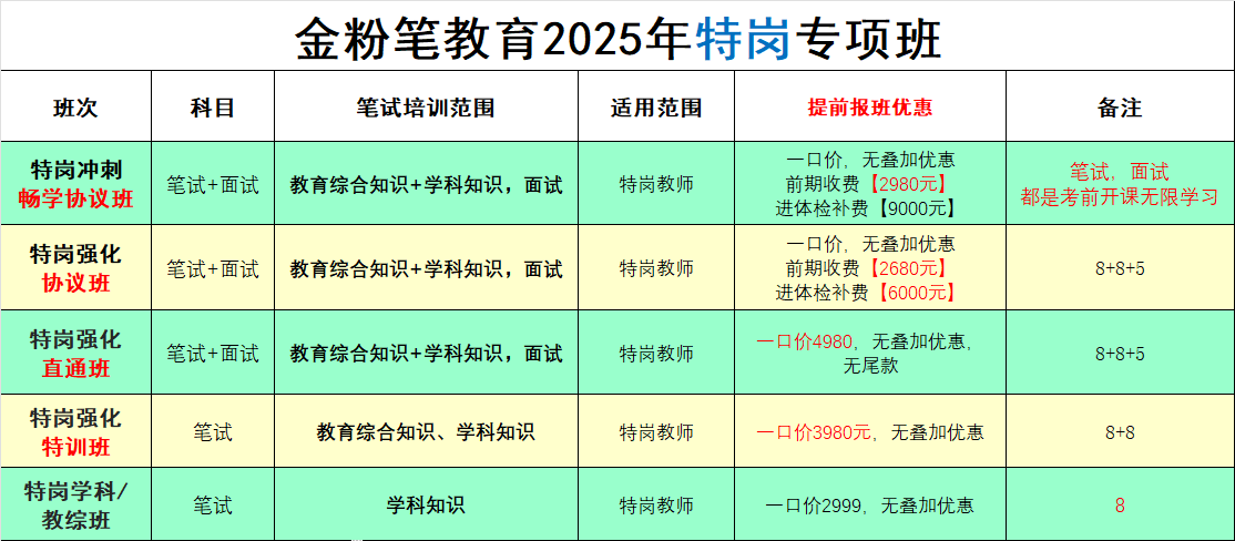 贵州金粉笔2025年特岗教师笔试冲刺班来了,开课时间详情咨询教务老师,贵州特岗冲刺班次有协议班、直通班、特训班、学科专业知识班,现在预订或报班,可享相关课程优惠,特岗教师笔试培训内容教育综合知识+学科专业知识,2025年贵州特岗教师笔试冲刺班预订及详情咨询:13368515037(微同)。