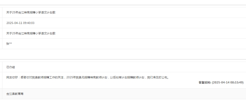 2025年台江县无招聘特岗教师计划。