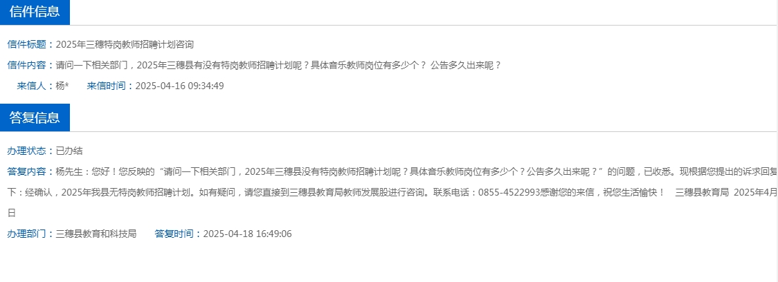 2025年三穗县无特岗教师招聘计划。