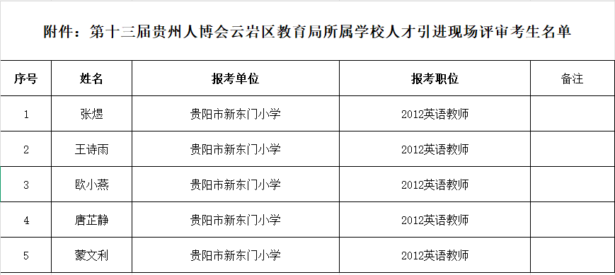 第十三届贵州人博会云岩区教育局所属学校人才引进现场评审考生名单