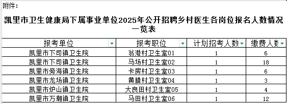 附件:凯里市卫生健康局下属事业单位2025年公开招聘乡村医生各岗位报名人数情况一览表