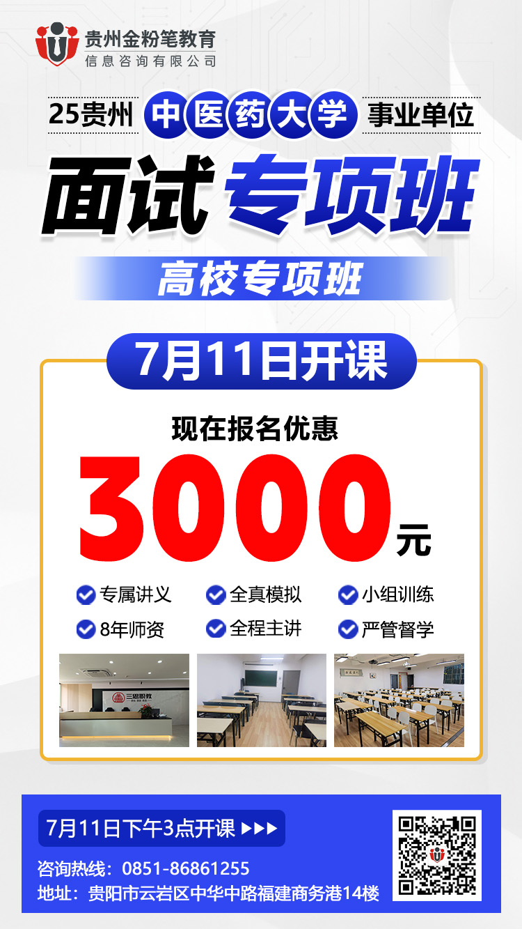 贵州金粉笔2025年贵州中医药大学面试专项班来了,开课时间7月11日,专项专训更专业,贵州中医药大学面试班预约及咨询:13368515037(微同)。