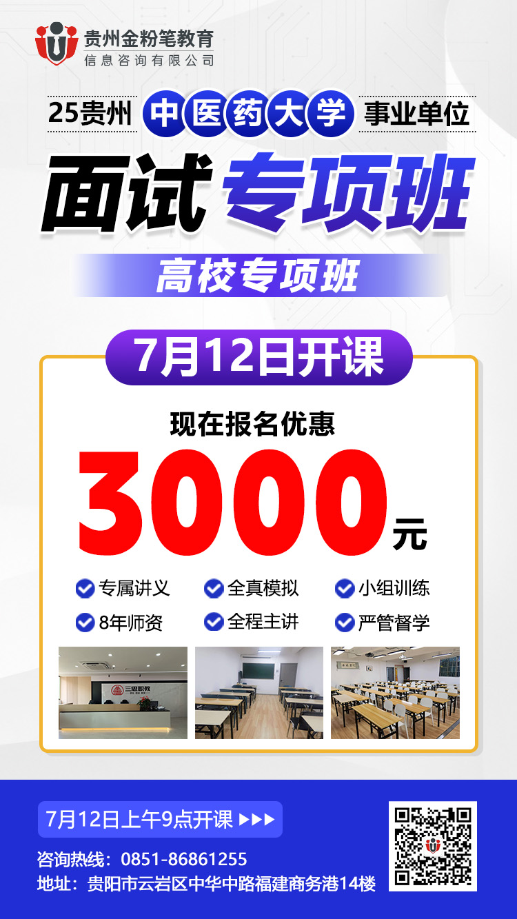 贵州金粉笔2025年贵州中医药大学面试专项班来了,开课时间7月12日,专项专训更专业,贵州中医药大学面试班预约及咨询:13368515037(微同)。