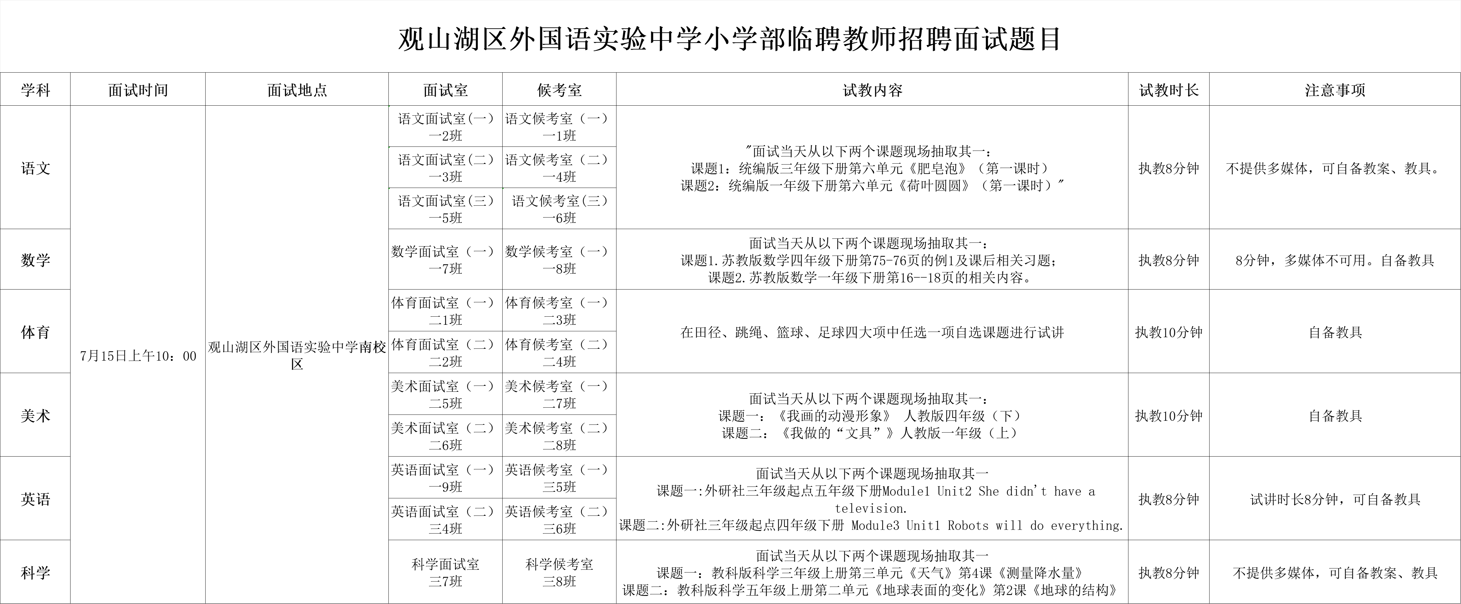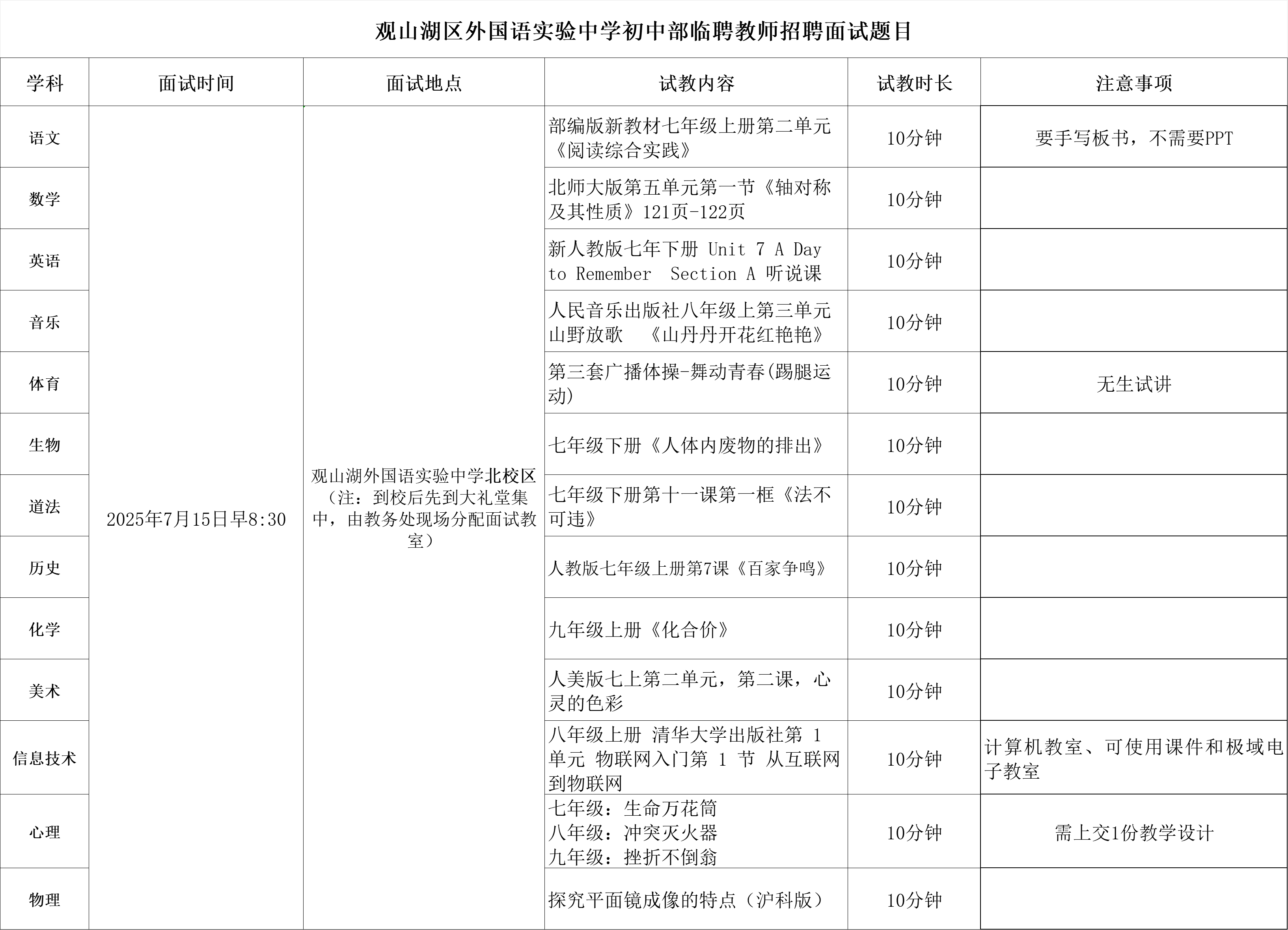 说明:有部分学科因没有岗位空缺,所以暂时不面试,后期如有空岗会继续通知面试。
