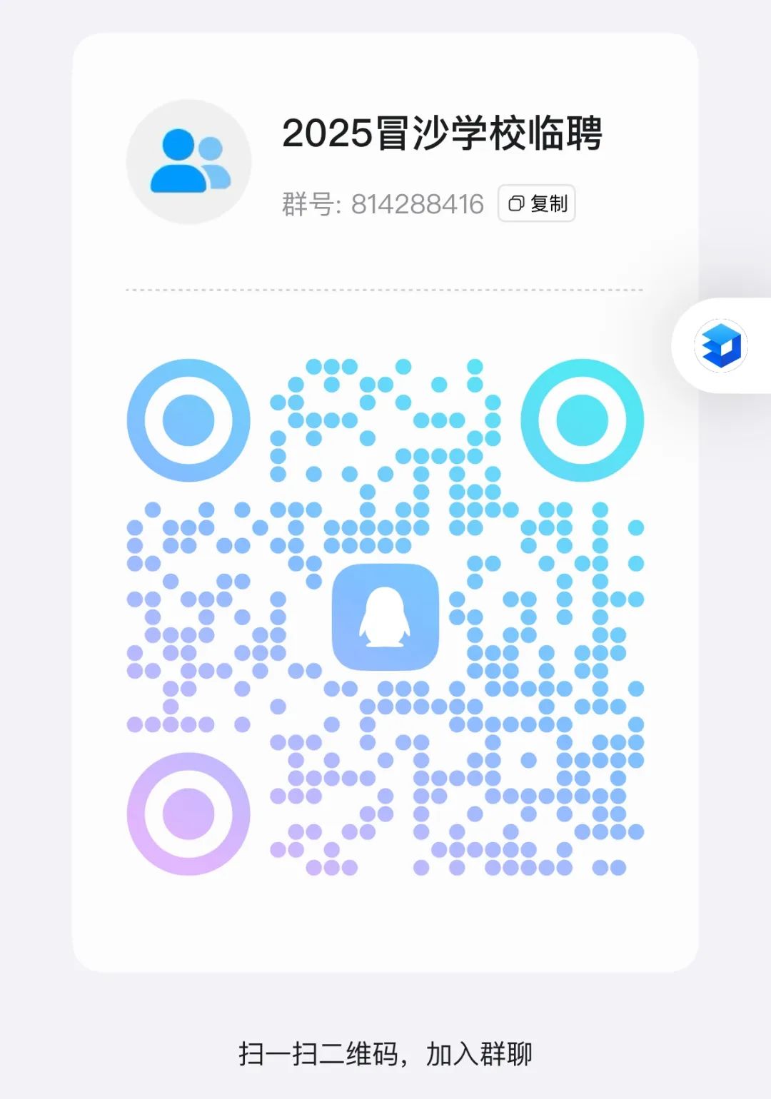 1.采取试教+面谈方式,请有意向且符合条件的老师即日起加入QQ群(进群后备注学科+姓名),群号及二维码如图:
