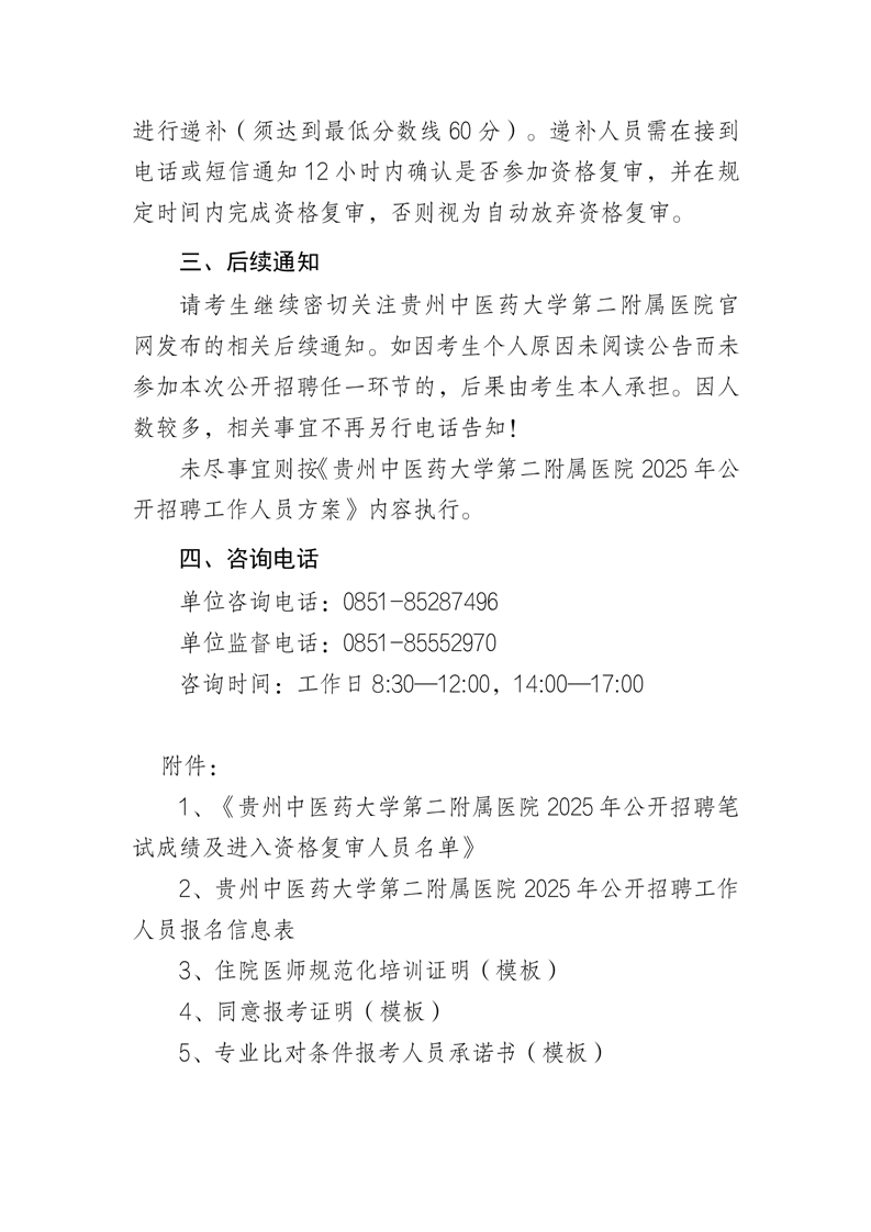 2025年贵州中医药大学第二附属医院招聘笔试成绩公示及资格复审公告
